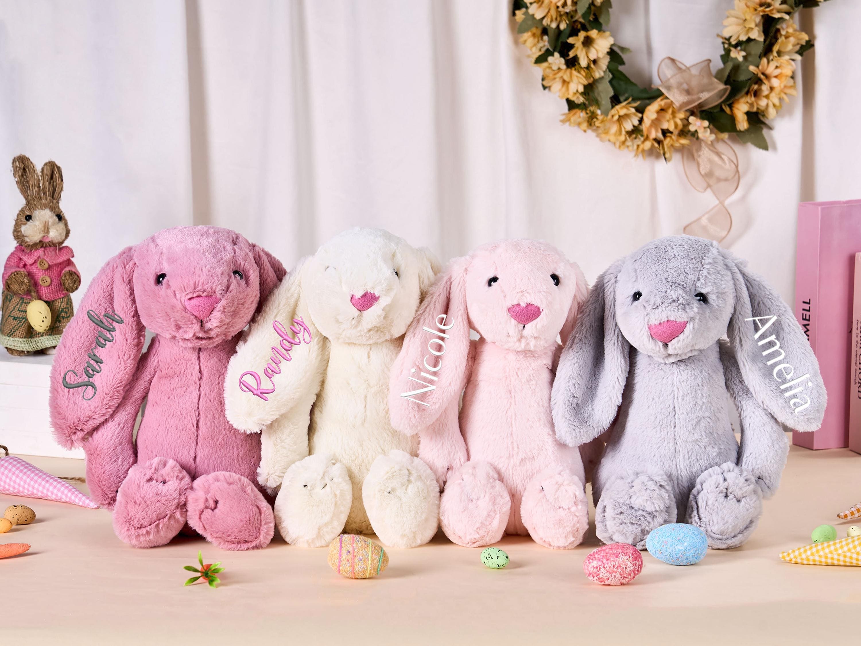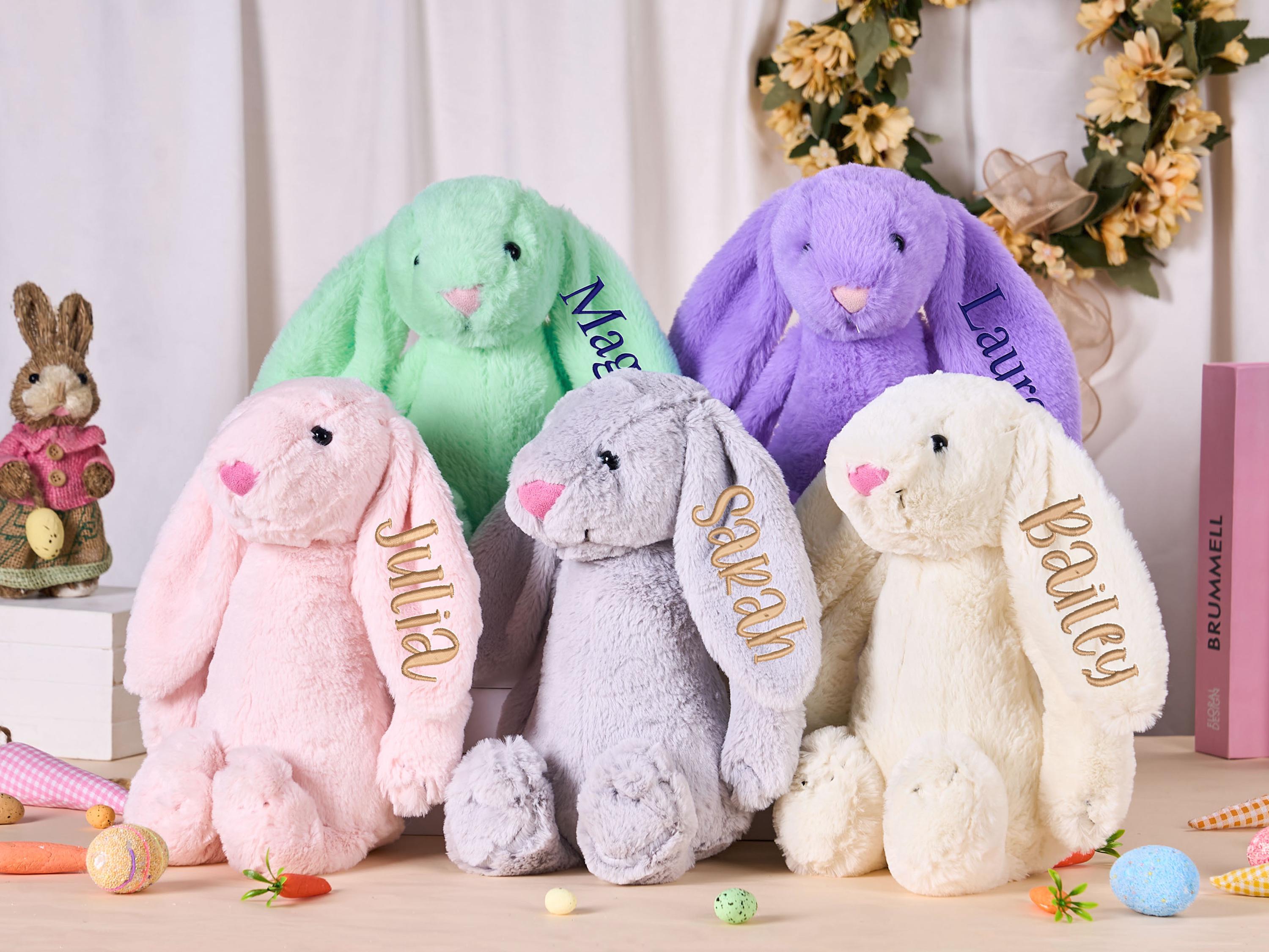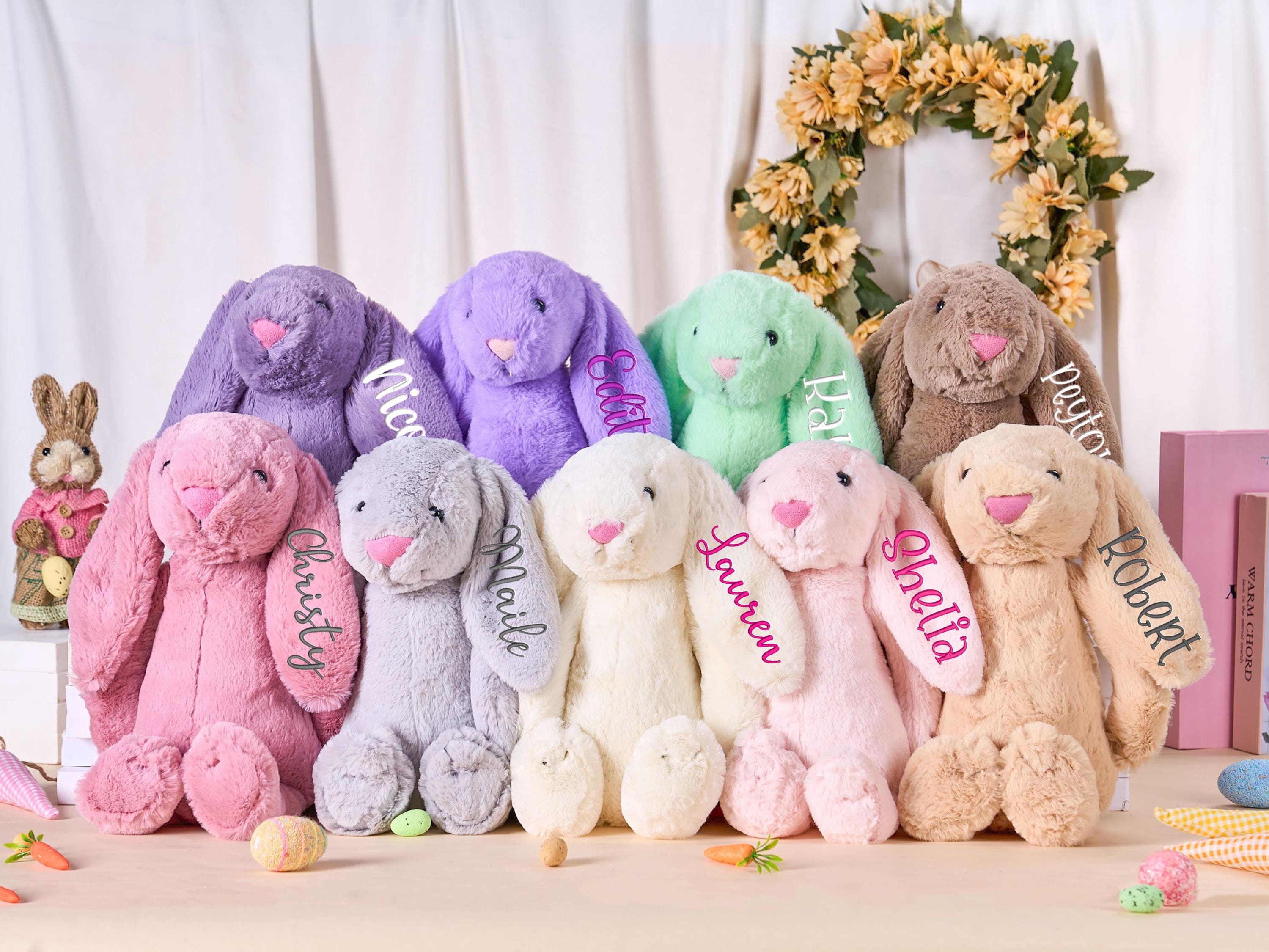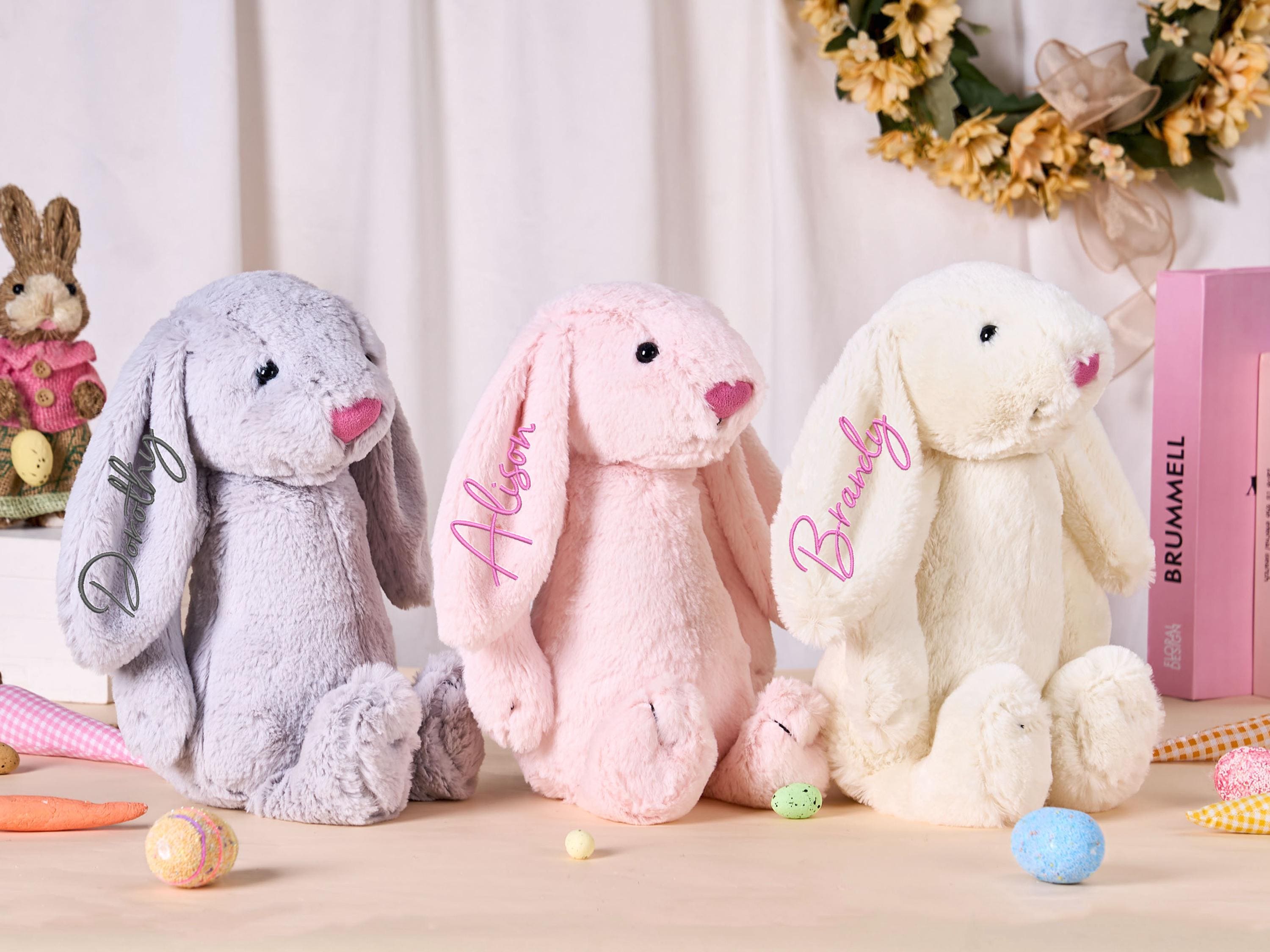 These adorable monogrammed bunny is the perfect gift for a new baby or milestone picture prop,so soft and plush - amazing to snuggle up and love on,making all the little ones in your life feel extra special.